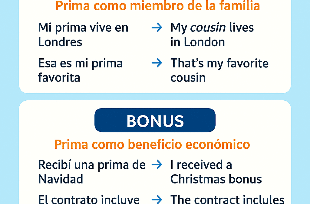 La palabra prima en español puede tener múltiples significados según el contexto. Por ello, al preguntarse cómo se dice prima en inglés, es importante analizar qué acepción se quiere traducir: puede referirse a un familiar, a un pago extra, a una ventaja o incluso a una expresión coloquial. A continuación, exploraremos en detalle todas las posibilidades y sus equivalentes en inglés.